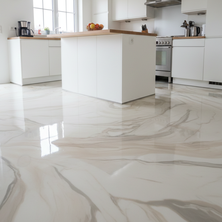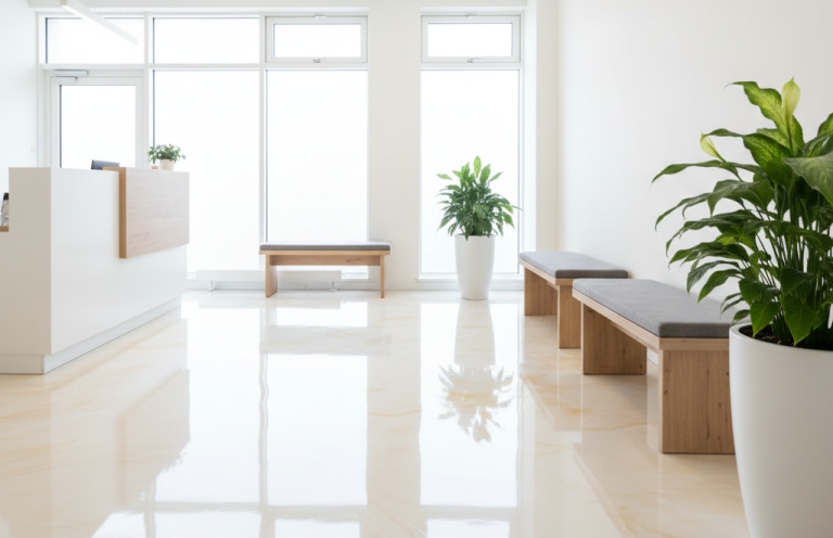 Epoxidharz verleiht gewerblichen Innenräumen eine ruhige, hochwertige Atmosphäre. Die glatte Fläche unterstützt einen klaren Look und lässt sich mühelos sauber halten – ideal für stilbewusste Unternehmen.