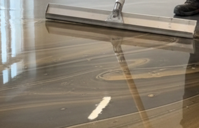 Gerade wird das flüssige Epoxidharz gleichmäßig auf dem Boden verteilt. Farbverläufe, Muster oder Metallic-Effekte entstehen direkt beim Gießen – jedes Design ist ein echtes Unikat. Präzision, Technik und Kreativität vereinen sich hier zu einem langlebigen Kunstwerk unter den Füßen.