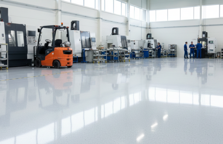 In Industriehallen, Werkstätten oder Lagern kommt es auf Widerstandsfähigkeit an – genau hier spielt der Epoxidharzboden seine Stärke aus. Er hält schweren Maschinen und täglichen Verkehr locker aus . Gleichzeitig sorgt seine fugenlose Oberfläche für ein sauberes, professionelles Erscheinungsbild.